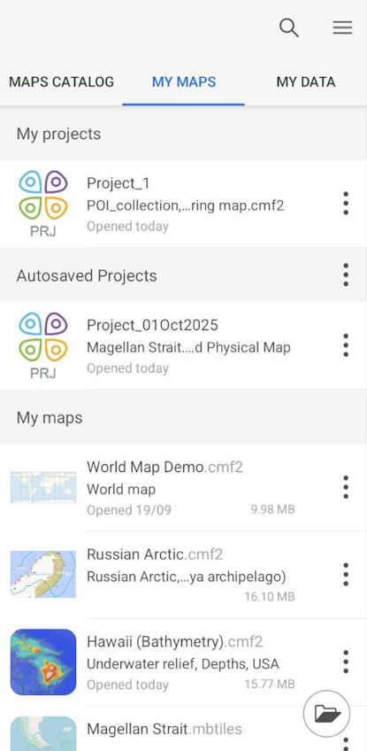 In the My maps tab all the previously saved and autosaved projects are stored.