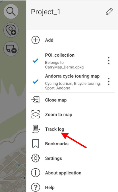 To view all tracks, go to Track log section in the project menu.