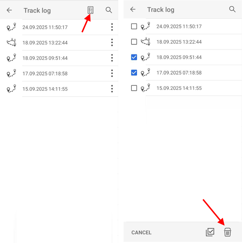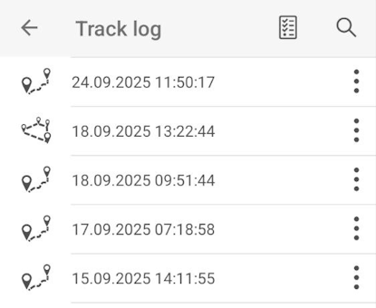 All tracks are automatically recorded by the app in the tracks log. Here you can find and restore any track even if an error occurred and the application was interrupted.