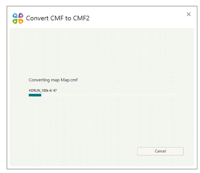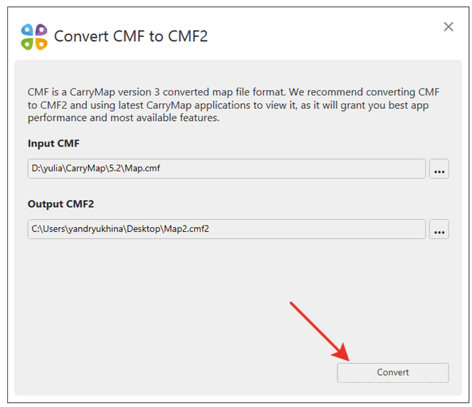Run the Convert CMF to CMF2 files tool on CarryMap Builder tab to start the conversion process.