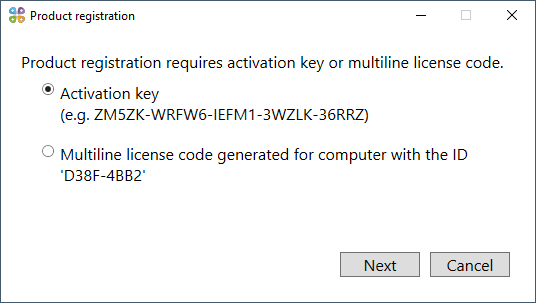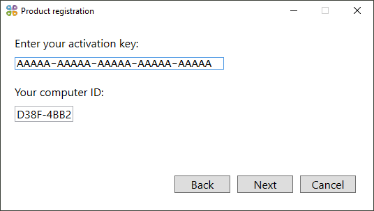 Enter the activation key in the appeared window and press Next .