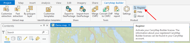 Registering CarryMap Builder license