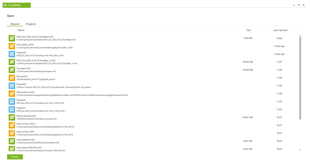 Otherwise, run CarryMap via Start menu. In the appeared window select the needed mobile map or project, double-clicking on it.