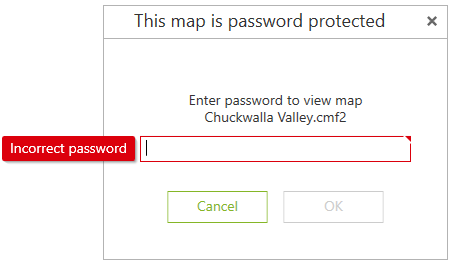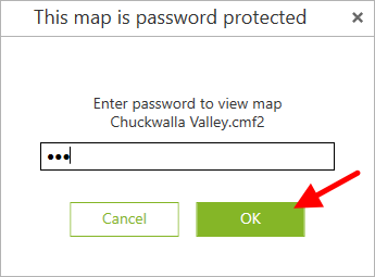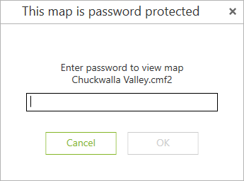 If access to the mobile map is protected by password, then when you try to open such a map, you will see the dialog asking to enter the password.