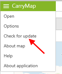 The application will check availability of CarryMap updates. In case of finding any newer CarryMap version you will see the appropriate dialog suggesting downloading it.